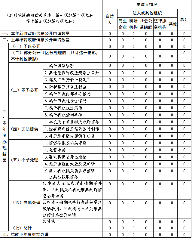 2024年,我區未收到過信息公開申請,未接到關于不予公開政府信息的電話咨詢,也無因政府信息公開申請行政復議、提起行政訴訟的案件。