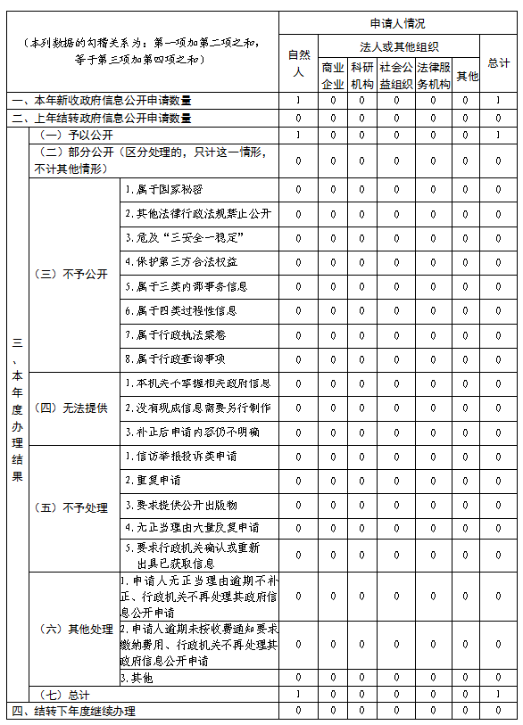 本報(bào)告內(nèi)容包括:總體情況、主動(dòng)公開政府信息情況、收到和處理政府信息公開申請(qǐng)情況、政府信息公開行政復(fù)議及行政訴訟情況、存在的主要問題及改進(jìn)情況、其他事項(xiàng),以及相關(guān)指標(biāo)統(tǒng)計(jì)附表等。報(bào)告中所列數(shù)據(jù)統(tǒng)計(jì)期限從2024年1月1日到12月31日止。報(bào)告電子版可從乳山市人民政府網(wǎng)站(網(wǎng)址:http://www.fwzgg.cn/col/col70371/index.html)查閱或下載。公眾如需進(jìn)一步咨詢了解相關(guān)信息,請(qǐng)與乳山市財(cái)政局聯(lián)系(地址: 威海市乳山市府前路1號(hào),電話:0631-6652664 )。