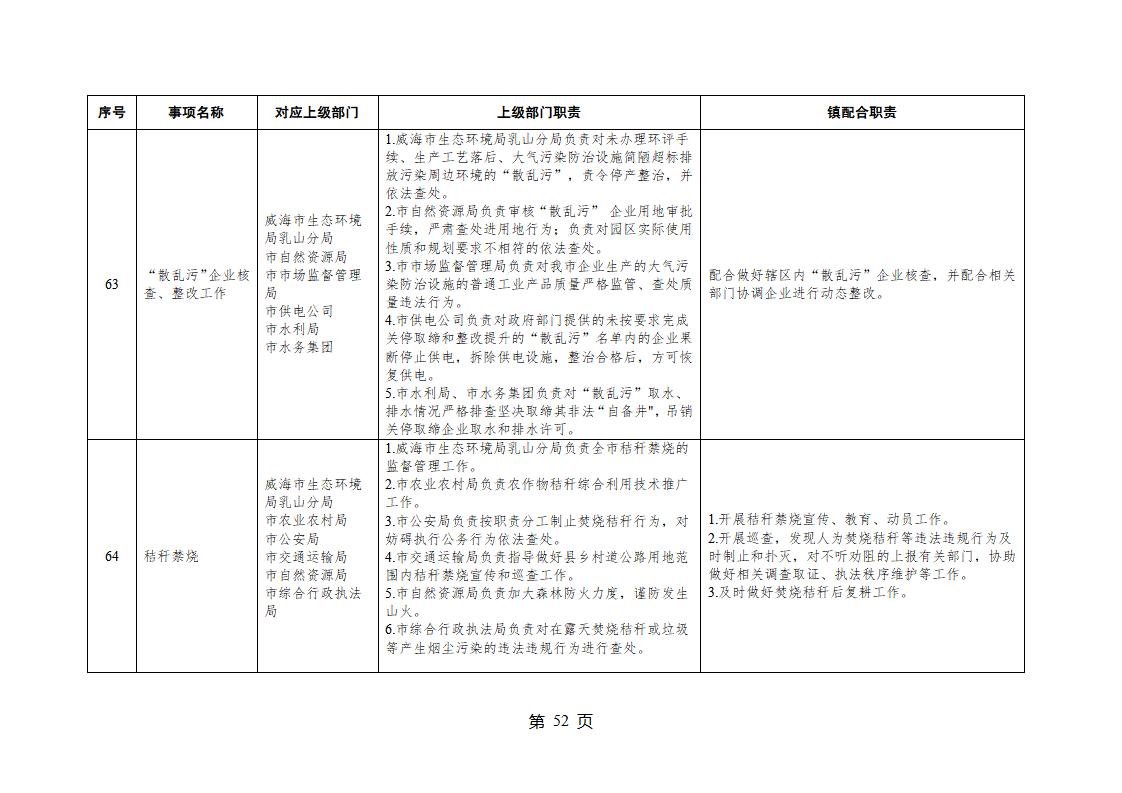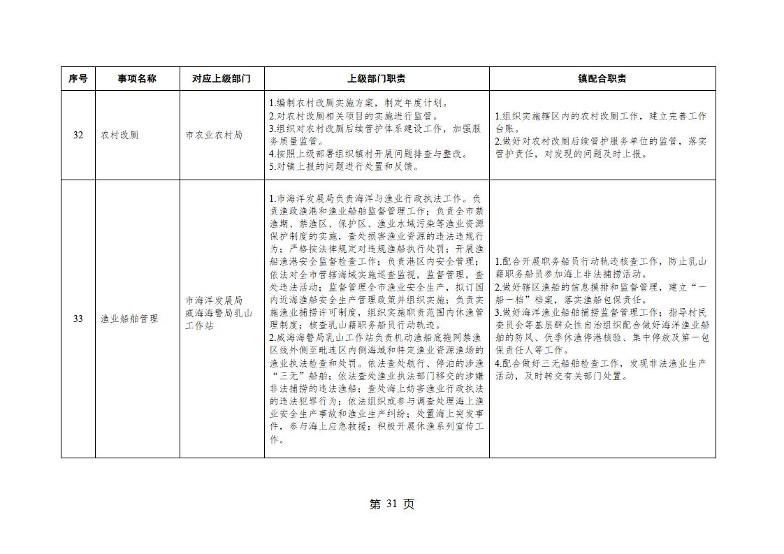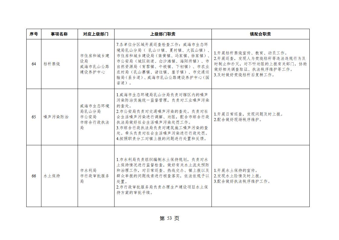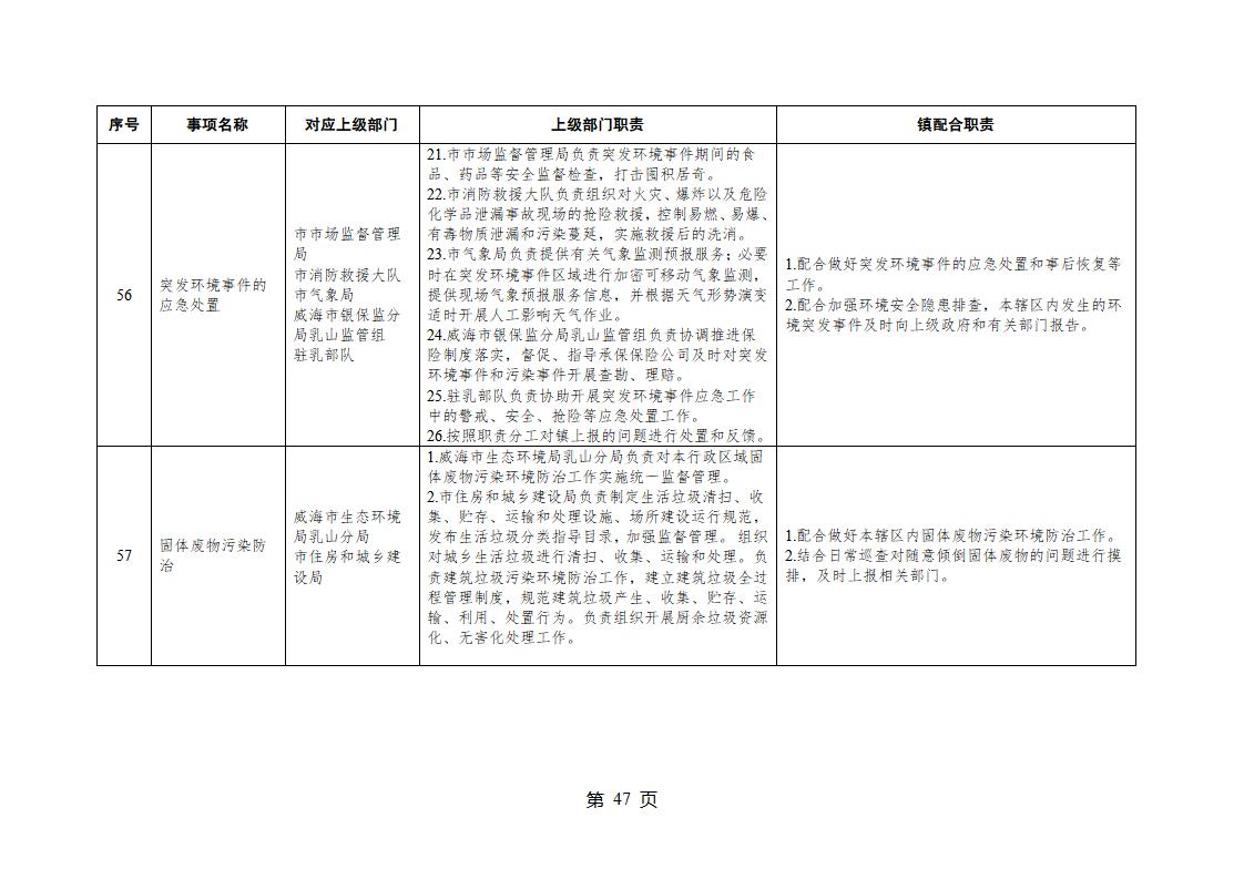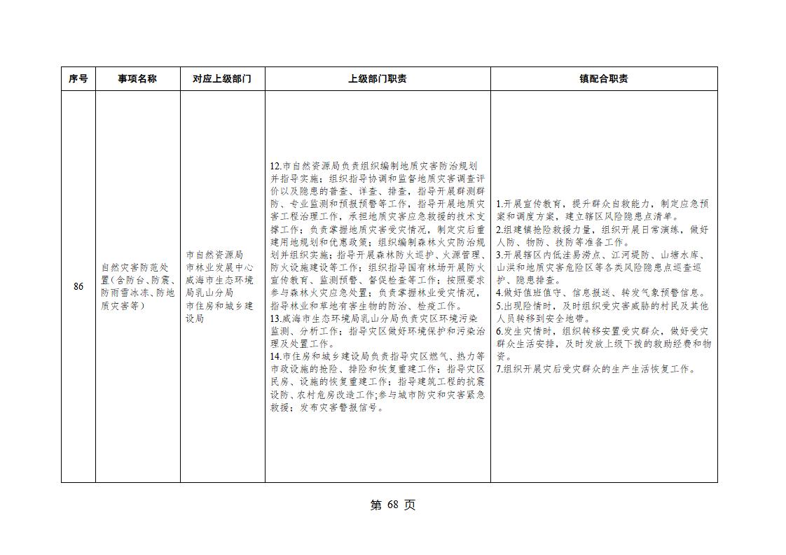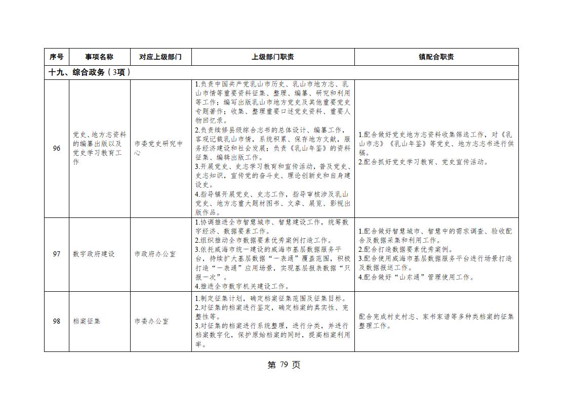 山東省威海市乳山市夏村鎮履行職責事項清單