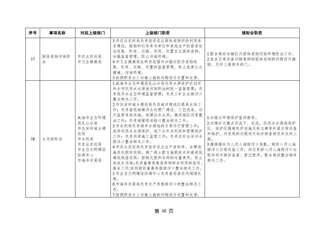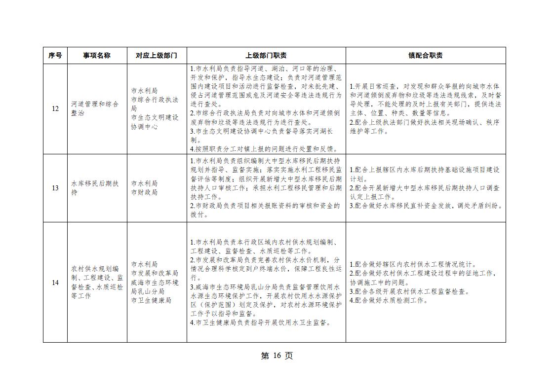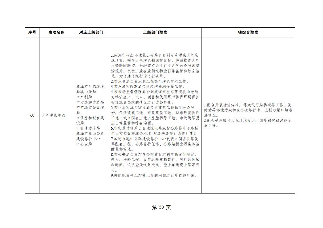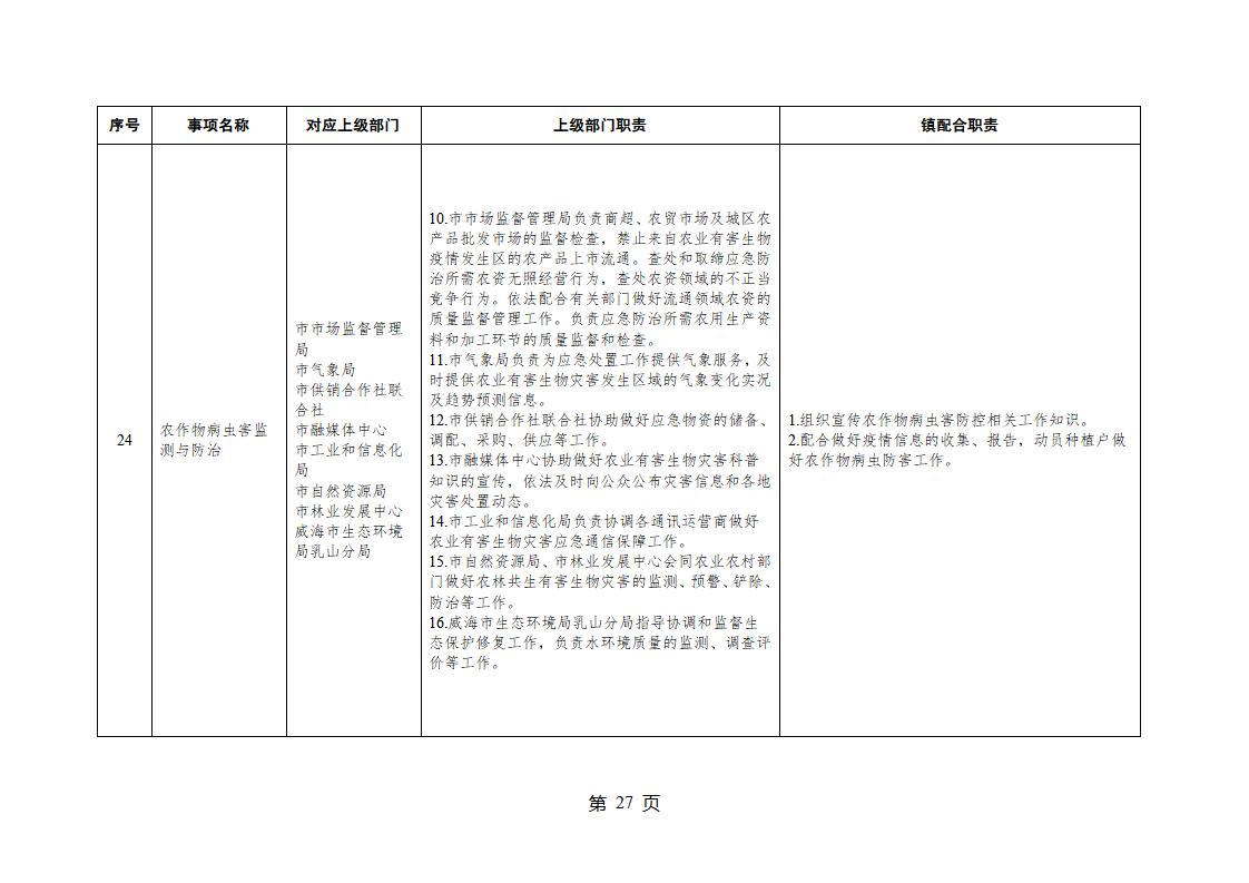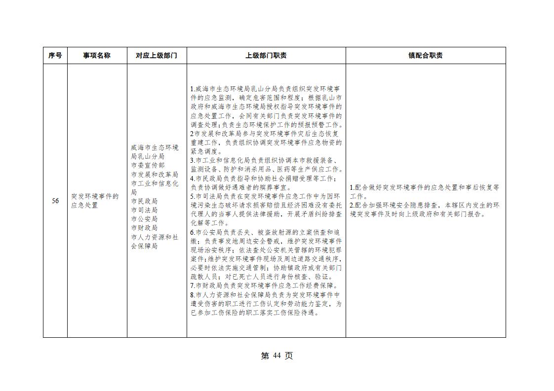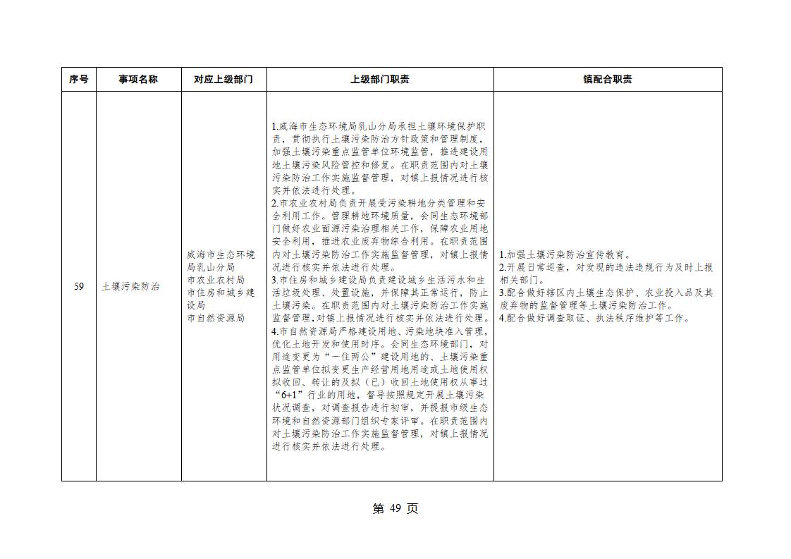 山東省威海市乳山市夏村鎮履行職責事項清單