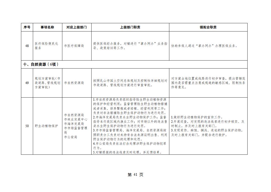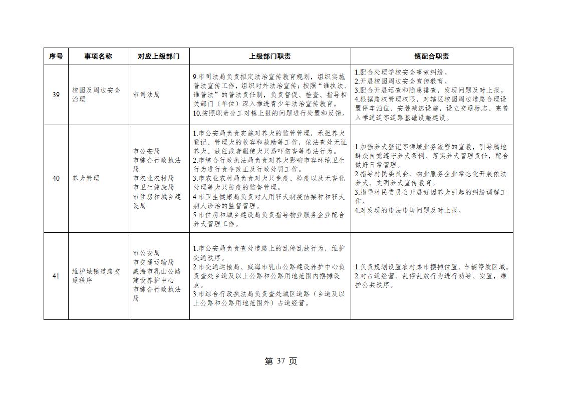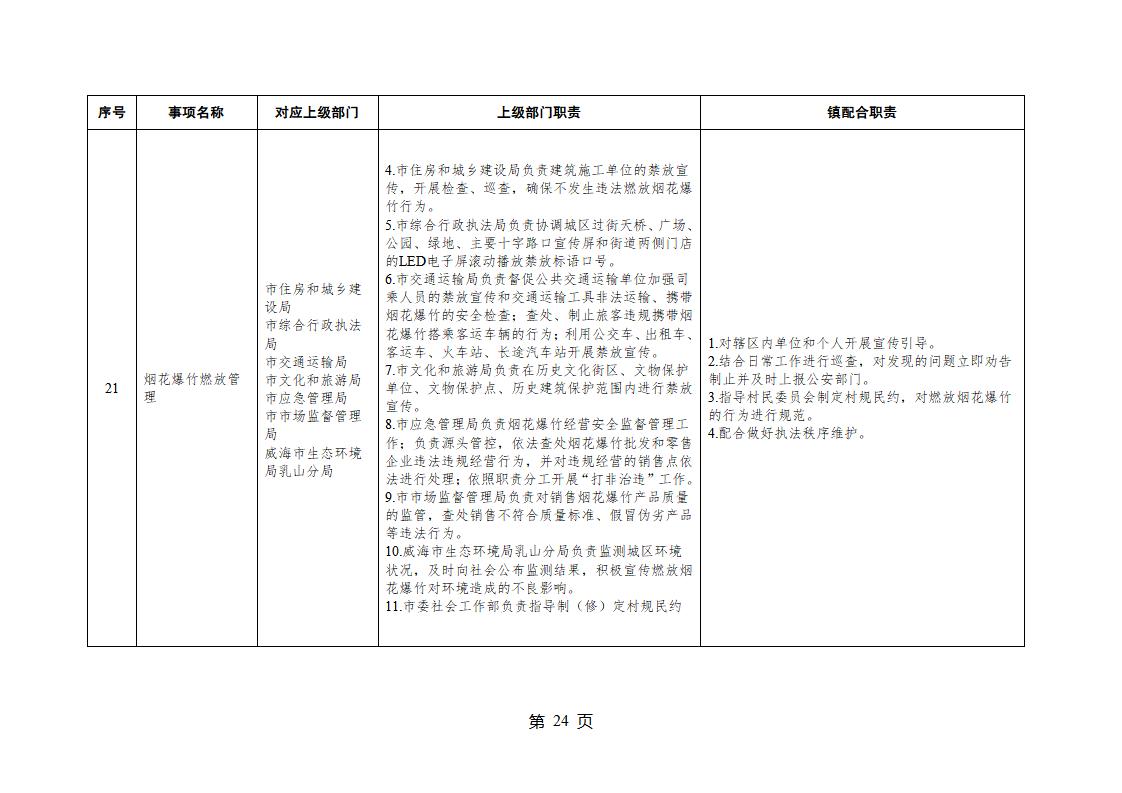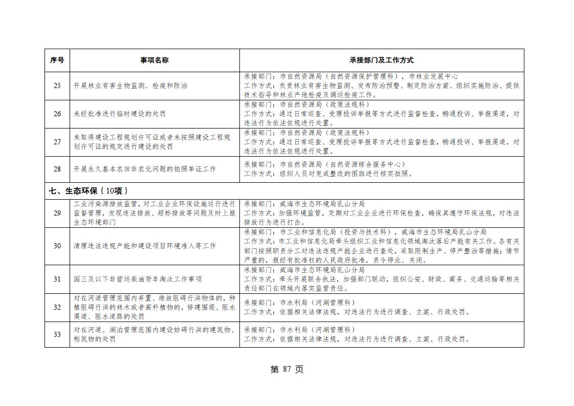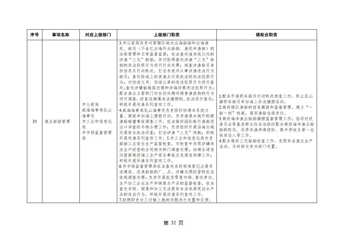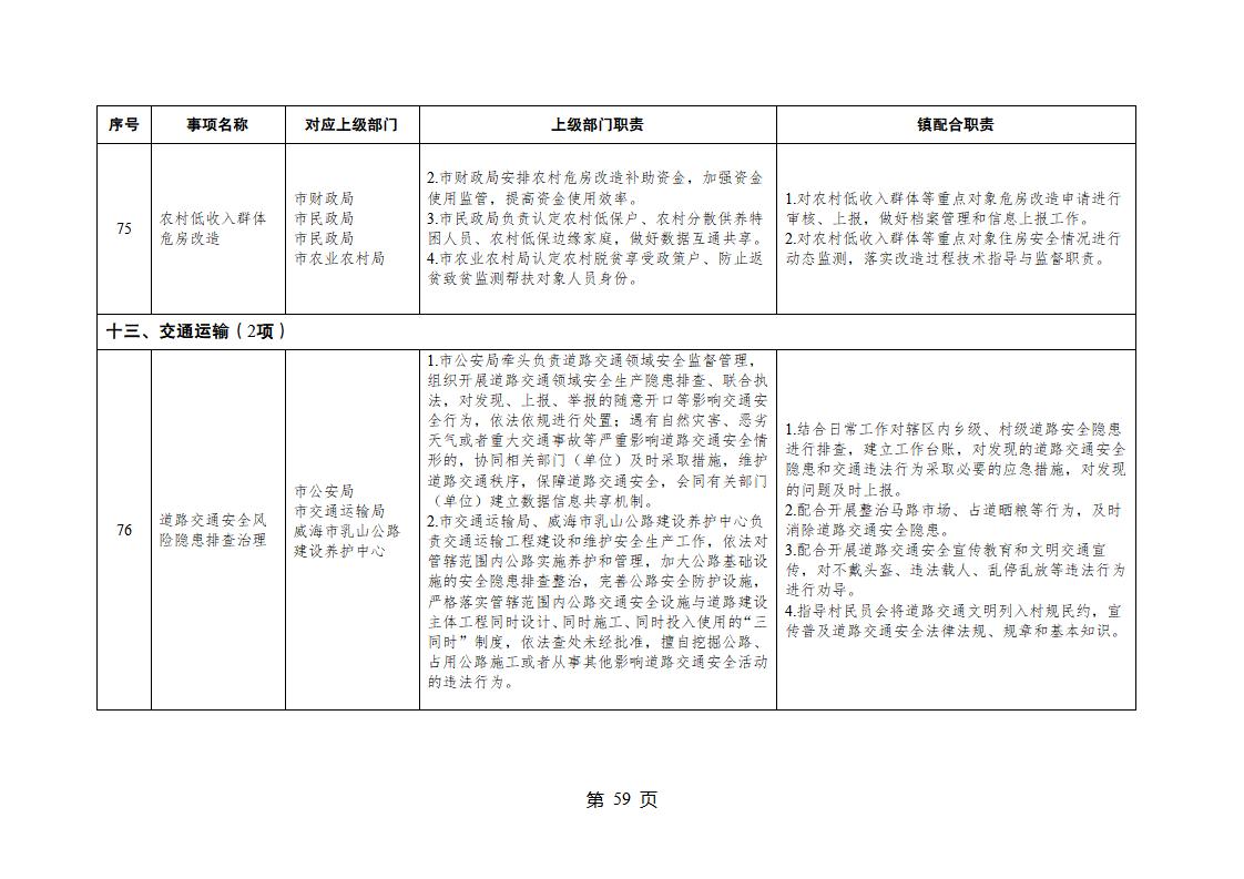 山東省威海市乳山市夏村鎮履行職責事項清單