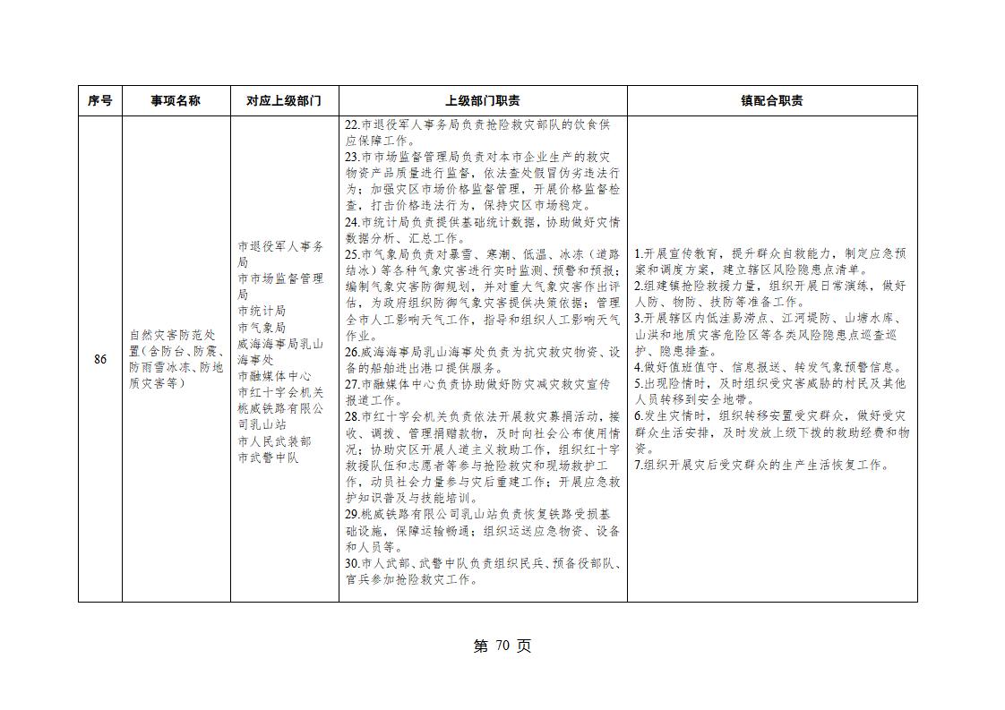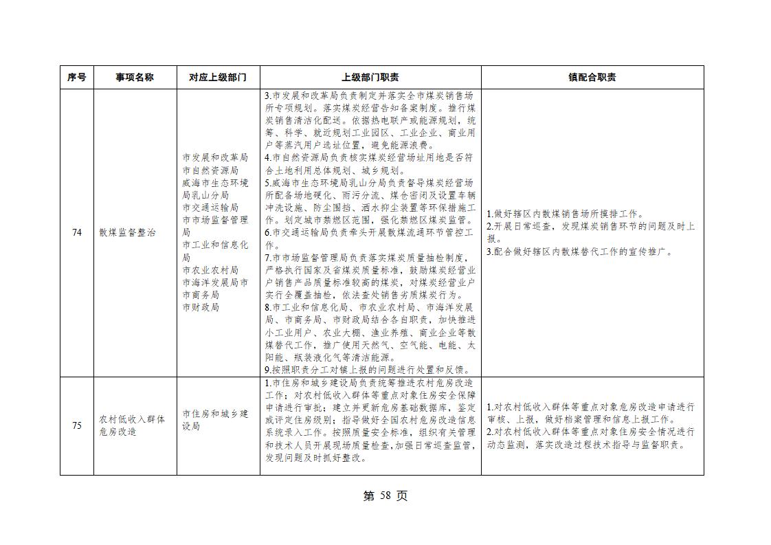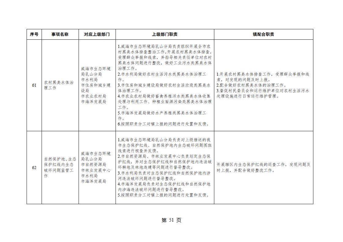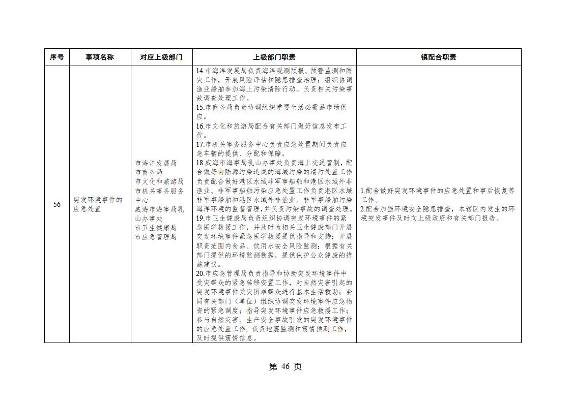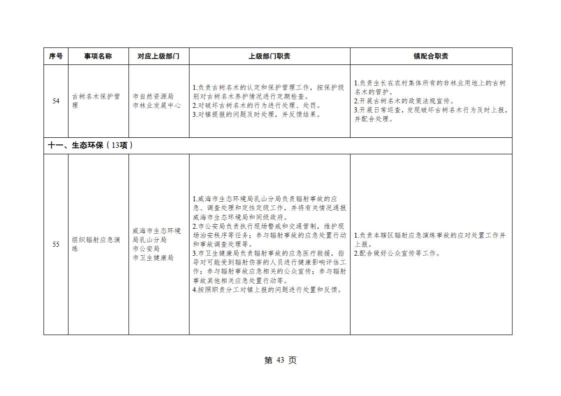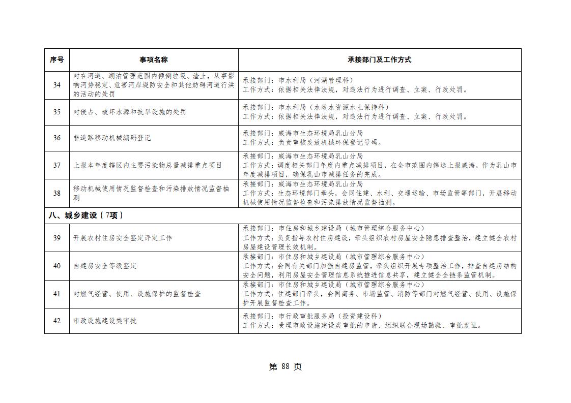 山東省威海市乳山市夏村鎮履行職責事項清單