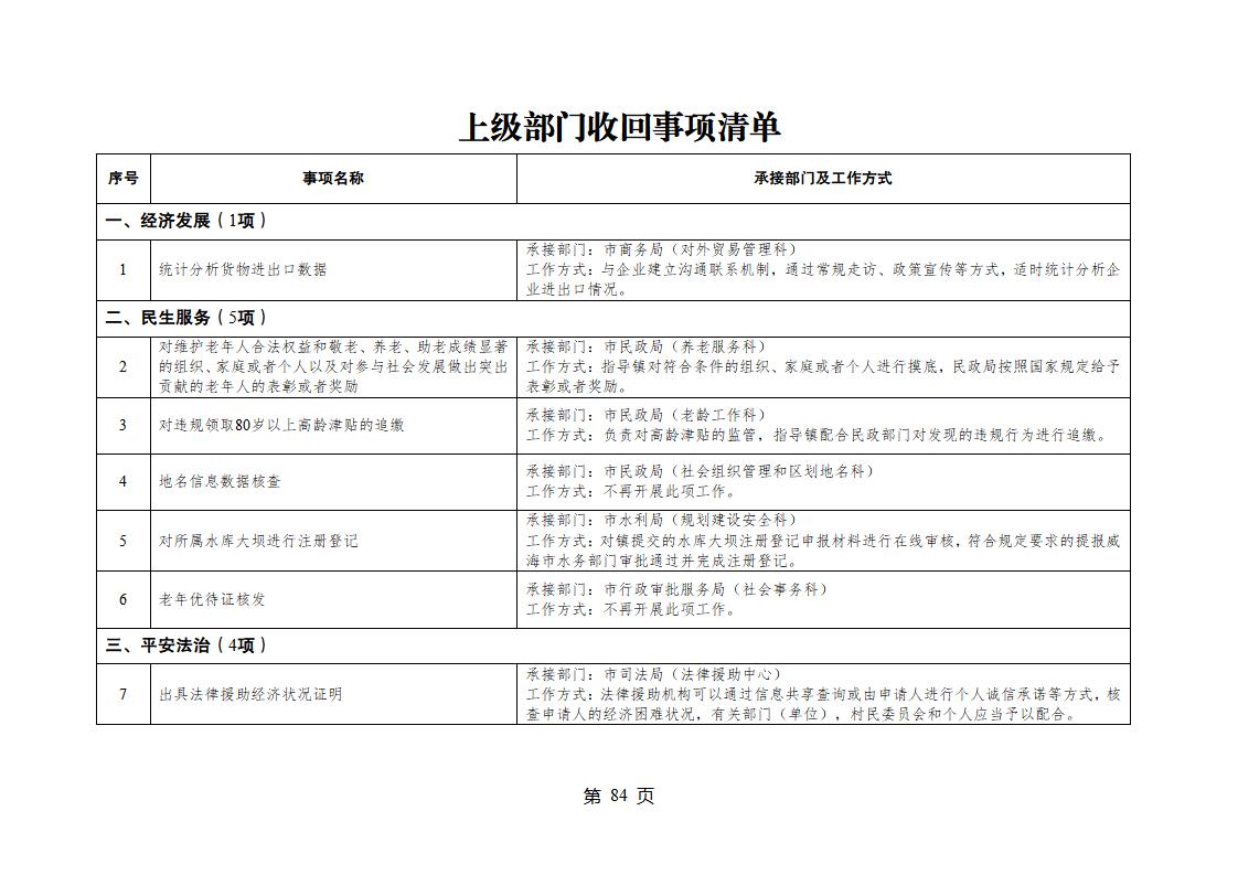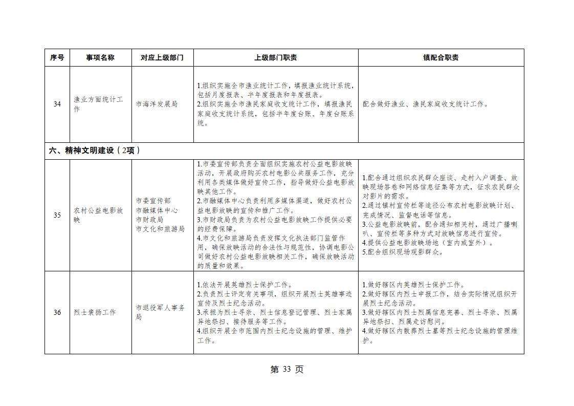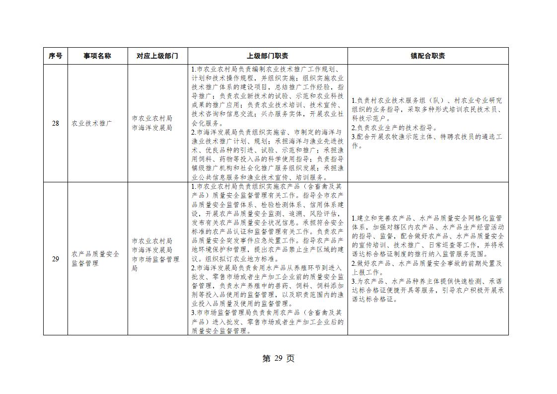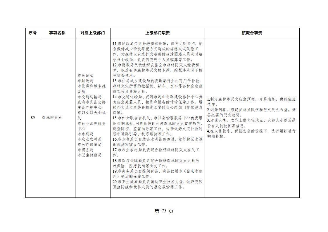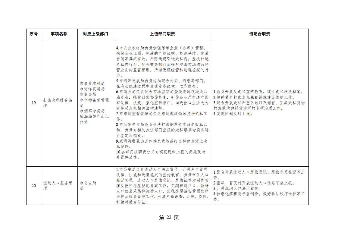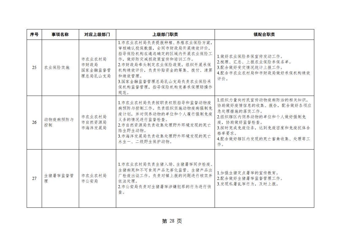 山東省威海市乳山市夏村鎮履行職責事項清單