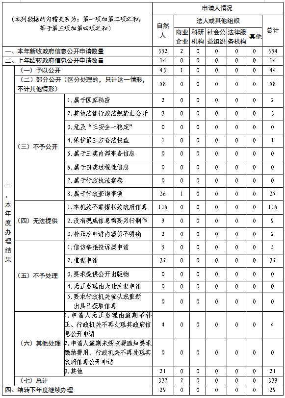 本報(bào)告內(nèi)容包括:總體情況、主動(dòng)公開政府信息情況、收到和處理政府信息公開申請情況、政府信息公開行政復(fù)議及行政訴訟情況、存在的主要問題及改進(jìn)情況、其他事項(xiàng),以及相關(guān)指標(biāo)統(tǒng)計(jì)附表等。報(bào)告中所列數(shù)據(jù)統(tǒng)計(jì)期限從2024年1月1日到12月31日止。報(bào)告電子版可從乳山市人民政府網(wǎng)站(網(wǎng)址:http://www.fwzgg.cn/col/col168796/index.html)查閱或下載。公眾如需進(jìn)一步咨詢了解相關(guān)信息,請與乳山市人民政府聯(lián)系(地址:乳山市勝利街78號(hào),電話:0631-6663232)。