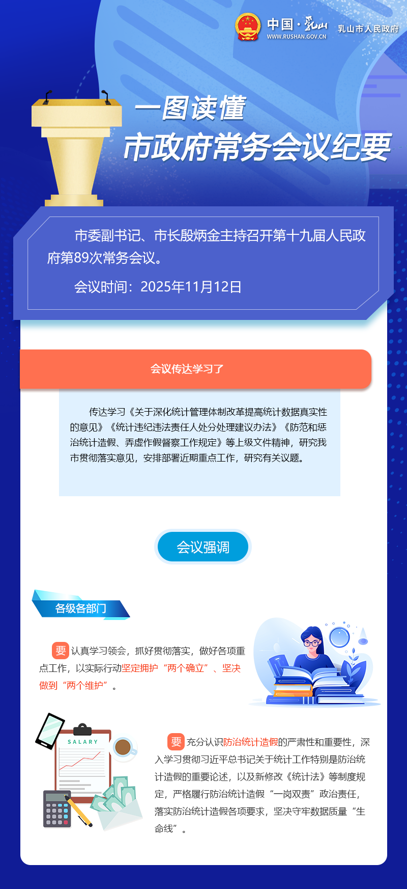 2025年11月12日,市委副書記、市長殷炳金主持召開第十九屆人民政府第89次常務(wù)會議,傳達(dá)學(xué)習(xí)《關(guān)于深化統(tǒng)計管理體制改革提高統(tǒng)計數(shù)據(jù)真實(shí)性的意見》《統(tǒng)計違紀(jì)違法責(zé)任人處分處理建議辦法》《防范和懲治統(tǒng)計造假、弄虛作假督察工作規(guī)定》等上級文件精神,研究我市貫徹落實(shí)意見,安排部署近期重點(diǎn)工作,研究有關(guān)議題。